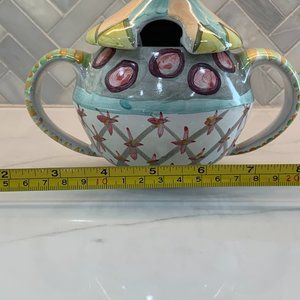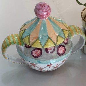 Handcrafted MacKenzie-Childs Odd Fellows Lidded Sugar Bowl