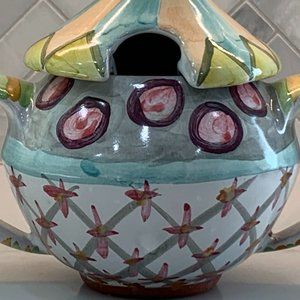 Discoverables, MacKenzie-Childs, Taylor Ceramics, Odd Fellows, majolica, sugar bowl, cottagecore kitchen, whimsical pottery, artisan ceramic