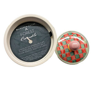 MacKenzie-Childs has created a lovely and luminous palm wax Forest Taylor Scented Candle that burns up to 65 hours and brings the warm woodsy notes of a forest floor to any space. Made in Portugal, the stoneware vessel features transfer decorations from MacKenzie-Childs collection of Taylor ceramics. The lidded container is reusable when the candle is done burning. Retired Collectible $135 retail.
