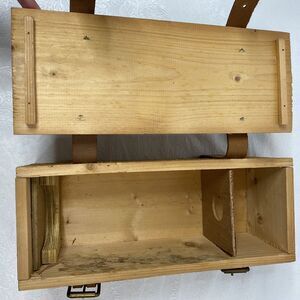 Box measures about 5.5" x 13.5" x 5" with leather straps and wooden neck holder, BOTTLE NOT INCLUDED