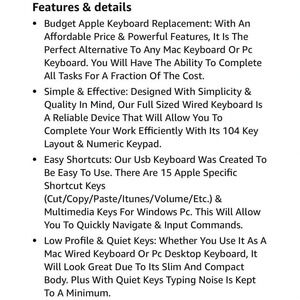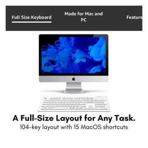Introducing the Macally 104 Key Full Size USB Keyboard, perfect for both MAC and PC users. This keyboard boasts 15 shortcut keys for easy navigation and increased productivity. The keyboard is easy to set up and use, simply plug it into your USB port and start typing away. The keyboard is made by Macally, a trusted brand in computer accessories, and comes in a sleek white color. This keyboard is standard size with a QWERTY layout and English language capability. Don't miss out on this great addition to your computer setup!