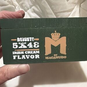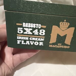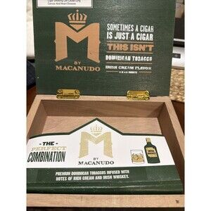 The Macanese Dominican Wooden Cigar Box, measuring 8.5x6x2.25 inches, is a handmade product from the renowned brand Macanudo.