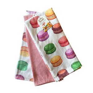 Brighten up your kitchen with this brand new Mireille Designs Macaroon Kitchen Towel Set of 3! Each 18x28 towel features a charming multicolored macaron print, perfect for adding a playful yet elegant touch to your kitchen decor. Made from a soft cotton-polyester blend, these handcrafted towels are both durable and machine washable—ideal for everyday use or as a thoughtful gift. Perfect for baking lovers, macaron fans, or anyone who enjoys cute and functional kitchen accessories!