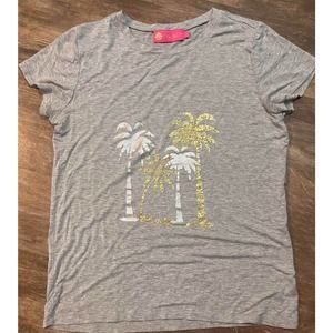 Macbeth Collection Gray Metallic Palm Tree Shirt Size Large