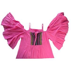 Macbeth Collection Margaret Josephs Pink Oversized Off Shoulder Tunic Shirt - M