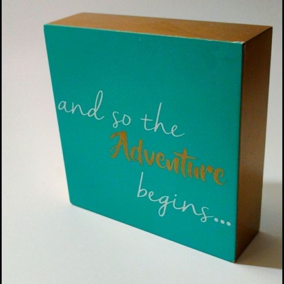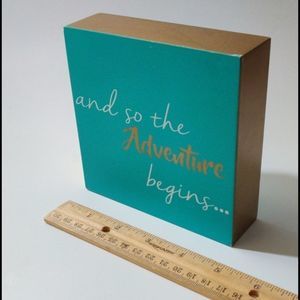 Teal and Gold Macbeth Collection decorative Square. "and so the Adventure begins" helps remind and celebrate new beginnings. Fun beginning. Better beginnings. Measurements are provided in the photos.