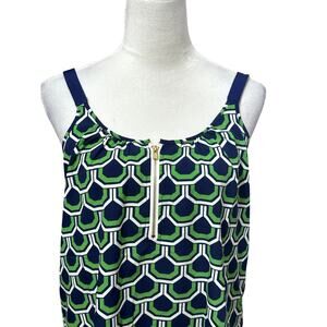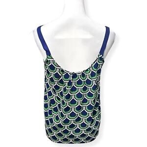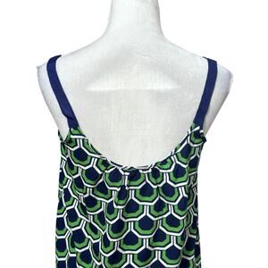 Macbeth Collection Top Tank Geometric Pattern Low Back Sleeveless Green Blue XS