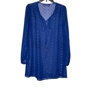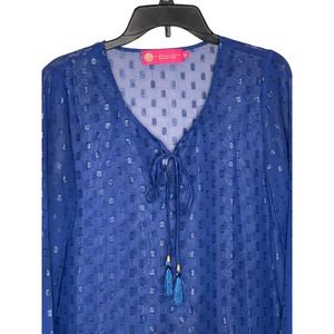 Macbeth Collection Women's Cover Up Sheer Tassel Pullover Swim Cover Blue Medium