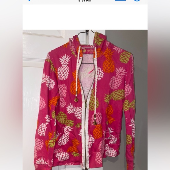 Macbeth Collection Zip up Jacket in a Fun Pattern of Pineapples and Colors it’s in Good used condition size is M