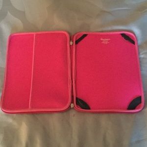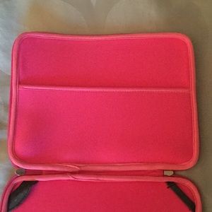 neon pink zebra pattern, light fabric, built in pocket and iPad holder