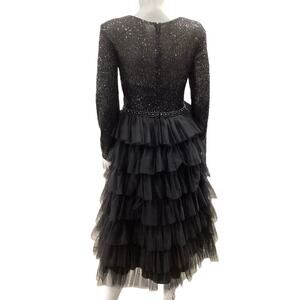 Macduggal Dress Women’s Size 4 Sequins And Tulle Long Sleeves Back Zipper Black