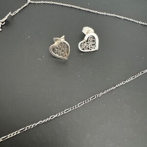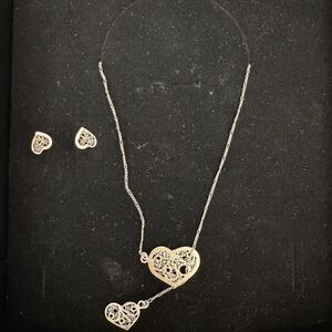Macedonian Filigree Heart Shaped Necklace and Earrings Set