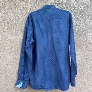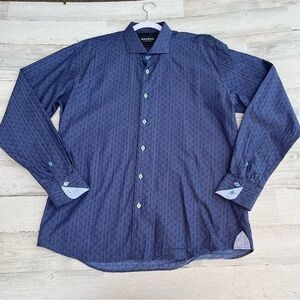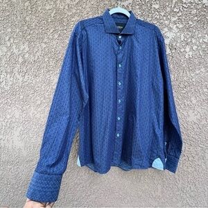 Maceoo Shirt Mens XL 5 Button Down Long Sleeve Abstract Design Blue Designer Luxe