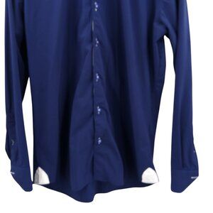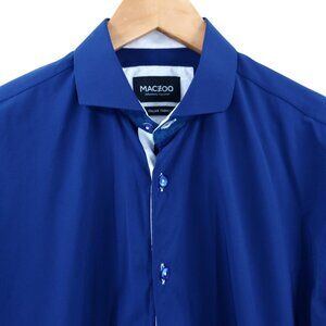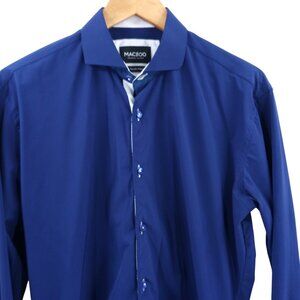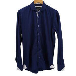 Maceoo Wall Street Navy Performance Long Sleeve Button Down Shirt Size 3 M Blue