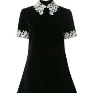 Macgraw OPIUM Velvet Silk Lined, Embroidered Sleeved Mini Dress