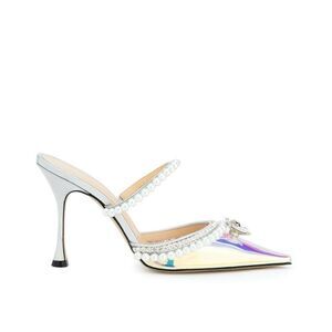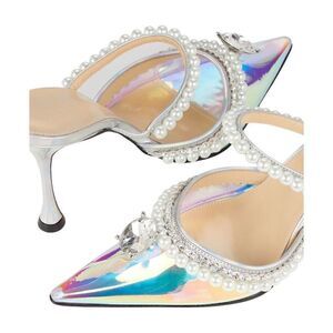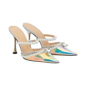 Mach & Mach 100 Iridescent Diamond Pearl Embellished PVC Mules Silver Clear 35