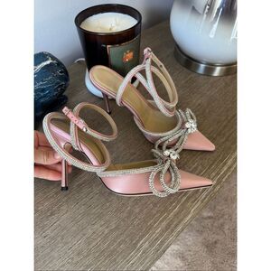 Mach & Mach Crystal Double Bow Pointed Toe Pump in Pink Size 36 / 5.5