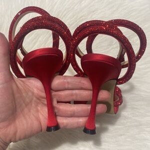 Tonal crystals sparkle around the double bow, silk-satin pointy toe and ankle strap of a celeb-fave stiletto that's ready for your own red-carpet moment.