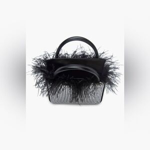 Mach & Mach Crystal & Feather Trim Satin Bag (Black)