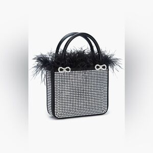 * A tuft of feathers adds floaty dimension to this crystal-beaded silk-blend satin bag with signature bows anchoring the top handles.