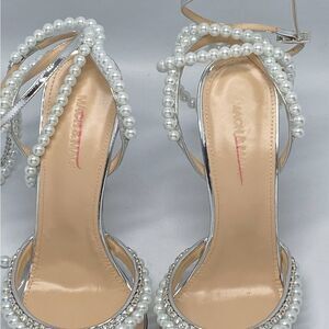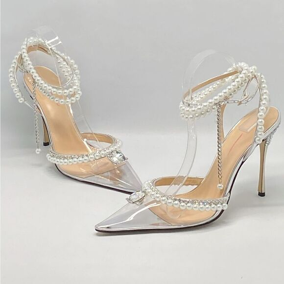 Evoking regal elegance with a plexiglass silhouette, MACH & MACH's Diamond of Elizabeth pumps are decorated with faux pearls and gleaming crystals. This Italian-made pair is enhanced with a flattering pointed toe.