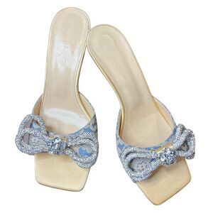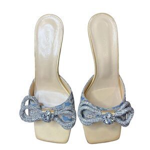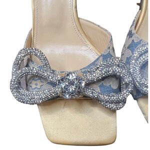 Mach & Mach Double Bow Floral Embroidered Square Toe Sandal NWOB Size 39 1/2/ 9