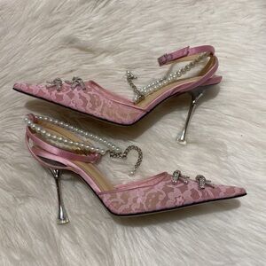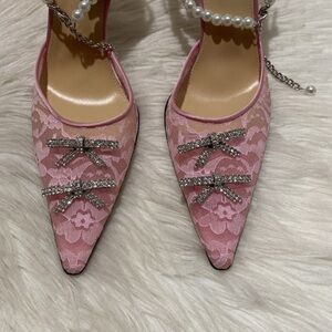 Mach & Mach Mini Bow embellished pink kitten lace pump heel size 36EU