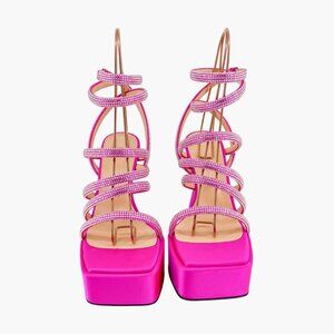 Mach & Mach Sydney Crystal Platform Sandals EU 37.5 US US 6.5-7 Pink High Heel