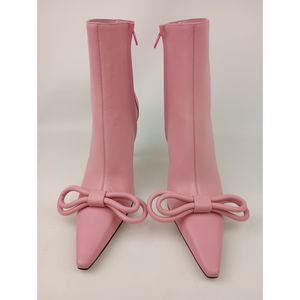 Mach & Mach Women's Pink Double Bow Leather Ankle Boots Size 37.5