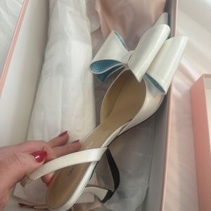 New in box Mach & Mach kitten heel. Satin with slight discoloration on right shoe.