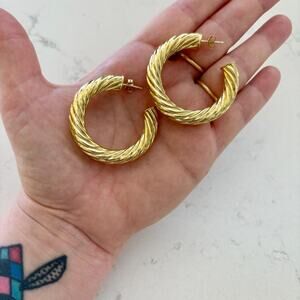 Gold hoops, gold plated hoops, twisted hoops, twisted gold hoops, twisted gold plated hoods, machete hoops, machete jewelry, machete twisted gold hoops, chunky hoops, chunky gold hoops, chunky twisted gold hoops, lightweight gold hoops, lightweight chunky hoops