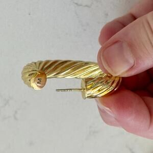 I'm sure I'll regret letting these beauties go (so get em b4 I change my mind!). They're Machete's Perfect Hoops but w/a twist. Literally! Made of recycled brass & 14K Gold. Very Lightweight. Handmade in Italy. 925 silver posts. 1 post has a slight bend (pictured & price adjusted)