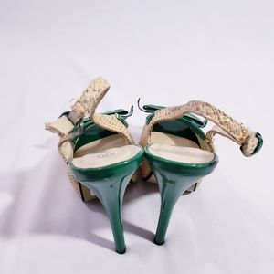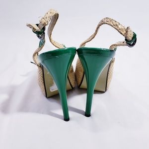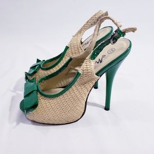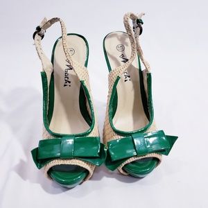 Machi Mochi Heels Platform Stiletto Ankle Strap 5.5 Green Straw Peep toe bow