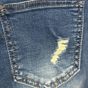Stylish ripped jean shorts. Ideal for everyday wear. Vibrant blue color.