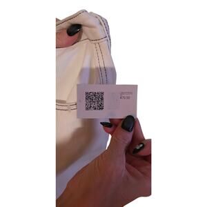 Features: Cargo pockets, straight leg, cream denim, cotton fabric