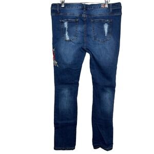 Machine Jeans Embroidered Roses Floral Skinny Distressed Women's Juniors Size 17
