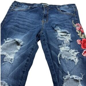 Machine Jeans Embroidered Roses Floral detail Ripped Skinny Jeans Distressed Destroyed Holes Rips Women's Juniors Size 17
