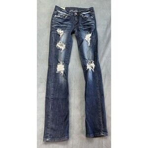 Women's Machine Novelle Mode destroyed blue jeans, denim, size 28 USA (actual 25x32). Stretch, skinny, tapered leg. No holes, rips, tears or stains. Pre-owned. Measurements in photos. Smoke free home.