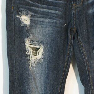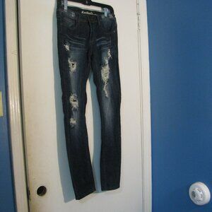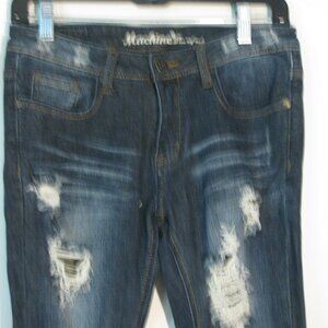 Machine Pour Neuf Mode jeans in juniors size 7. New with tags, these skinny jeans have a ripped destroyed distressed style. Traditional 5 pocket style with a zip and button front close. Made from 97% cotton and 3% spandex, machine wash.