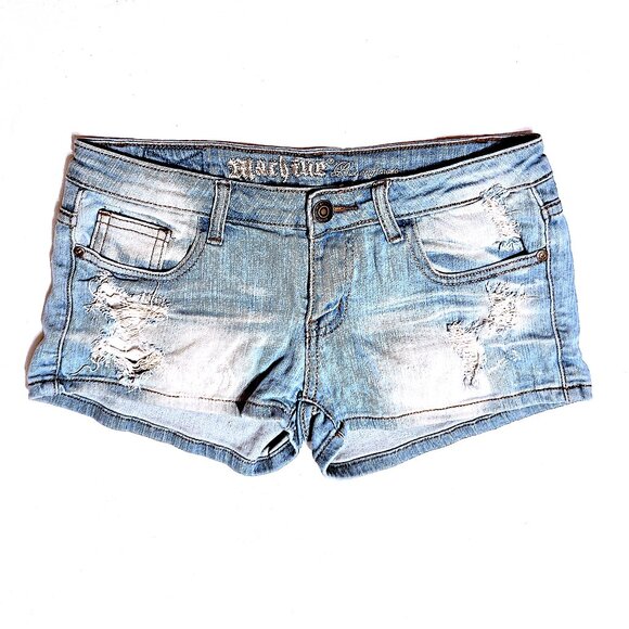 Machine Pour Neuf Mode Women's Ripped Hem Distressed Denim Jeans Shorts, Size 28