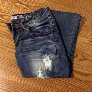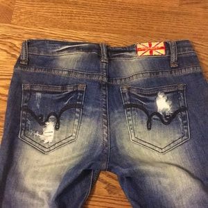 Ripped skinny jeans to bring attitude into any outfit 😏 Worn a couple times, so the color of the bottom area is a bit worn out as shown in the photo (but it adds to the ripped style!) Great condition! SIZE 1