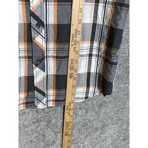 Machine Shirt Mens Size Medium Gray Plaid Button Up Short Sleeve Chest Pockets