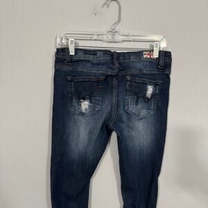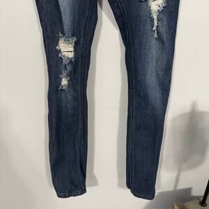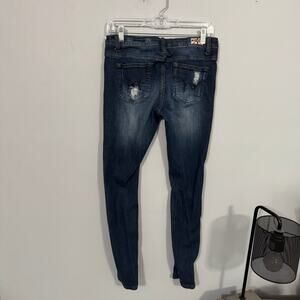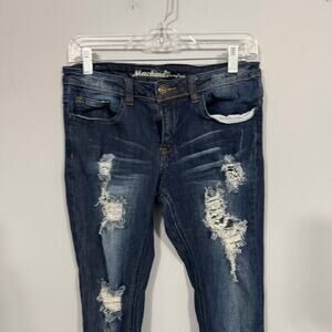 Machine pour neuf mode Distressed Ripped Skinny Jeans Juniors Size 9 / women's size 30. Cotton & spandex blend. Jeans are in good used condition with no flaws or stains other than some minor wash wear. Perfectly broken in and comfortable. Please see close-up pictures for condition details.
