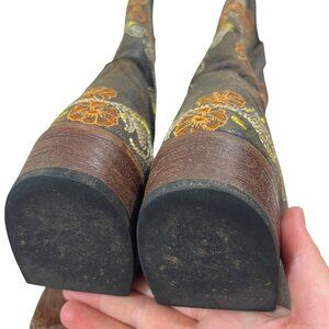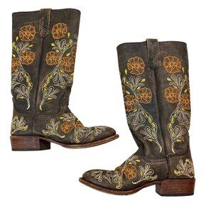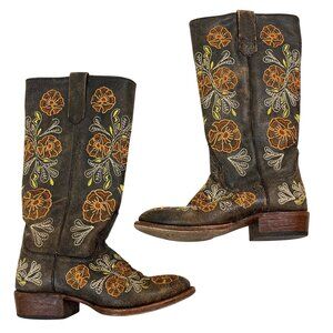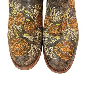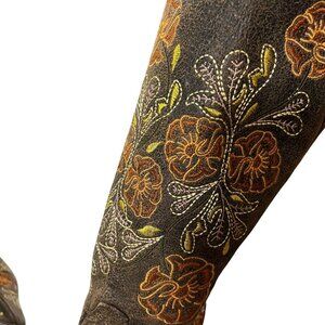 Macie Bean Boots women's 8 brown leather white yellow orange floral embroidered
