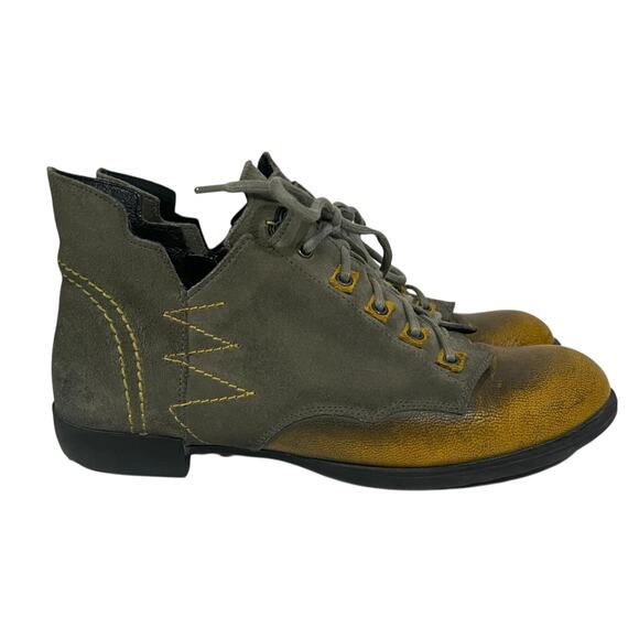 Maciejka Ankle Boots Leather Flats Gray Yellow Vintage-Look Lace Up Zipper Sz 8