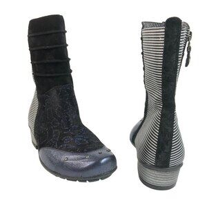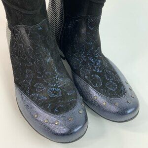 Maciejka Bootie Women Size 6.5M Leather Block Heel Mixed Print Bootie