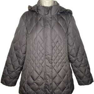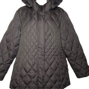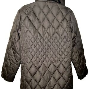 Macintosh New England Women's Quilted Winter Coat M Brown Removable Hood Full Zip Snap Zip Pockets