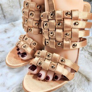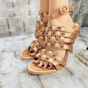 ☆ Mack J Gold Satin Woven Strap Studded High Heel Shoes