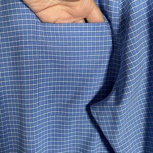 Mack Weldon Airflex Performance Stretch Shirt Men's XL Seawool Blue Windowpane