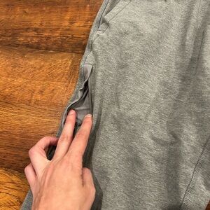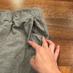 Great condition- no holes or stains. Drawstring is missing but it doesn’t affect wear. These pants are so soft and comfortable. These are good for lounging but also nice enough to run errands in.